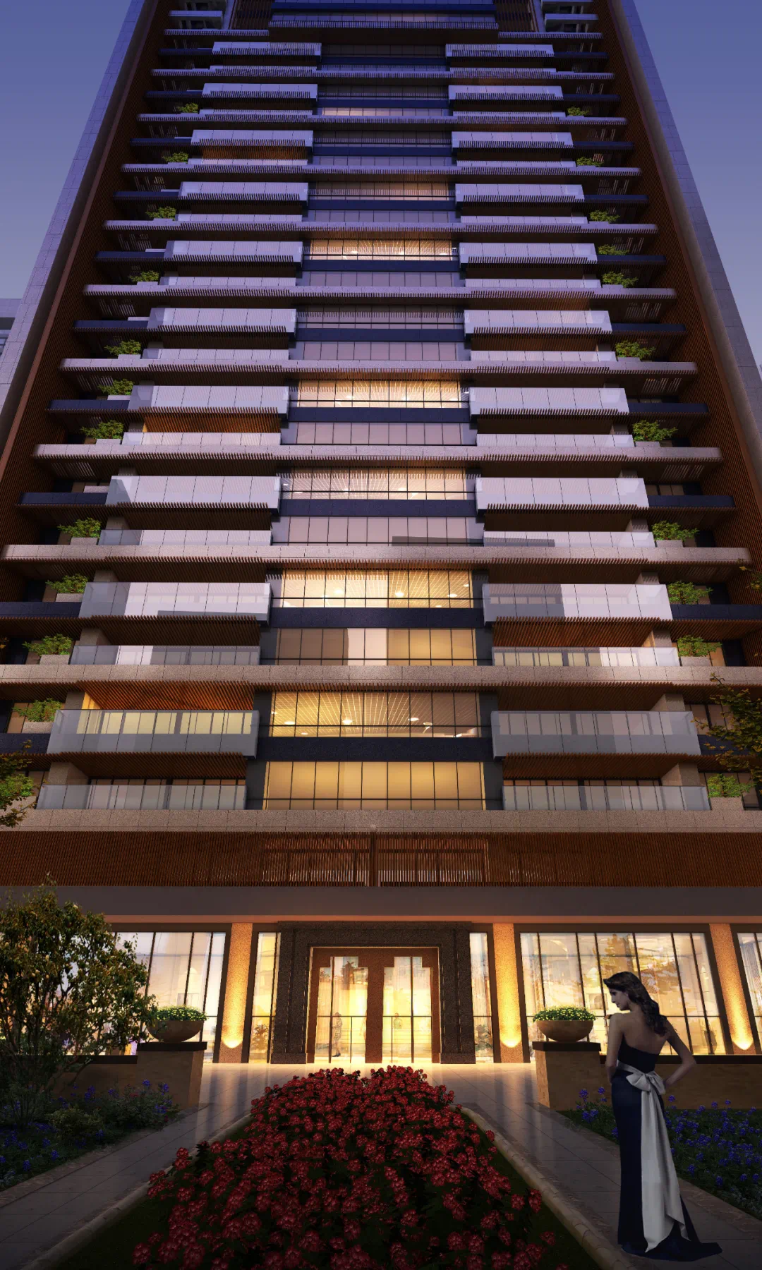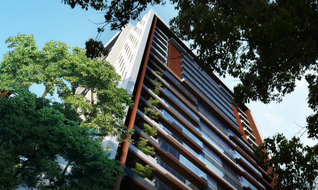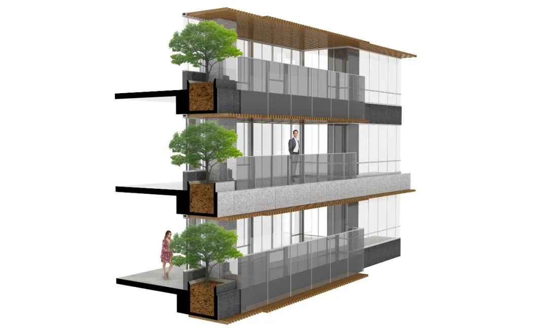 建筑的层高设计为市场上极为罕见的3.3米,并且在每层通长的露台上为每一户的业主提供一个“空中花园”,可允许种植花卉、乔木等绿植,并设计自动滴灌系统为植物提供日常护理。