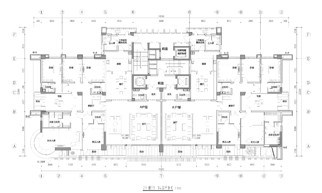 ▲2#楼13-14层平面图ⒸKKL
