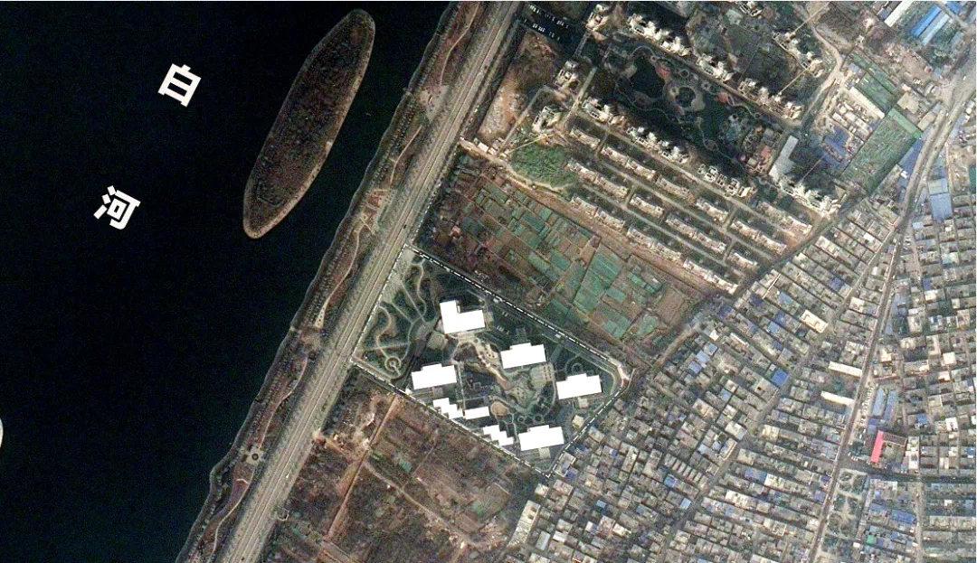 沿白河大道的地块,普遍采用一种与道路垂直或平行的建筑布局方式来进行设计,这种方式看起来似乎是一种对城市肌理的延续,但却难以从理性的角度获得真正的融合性。