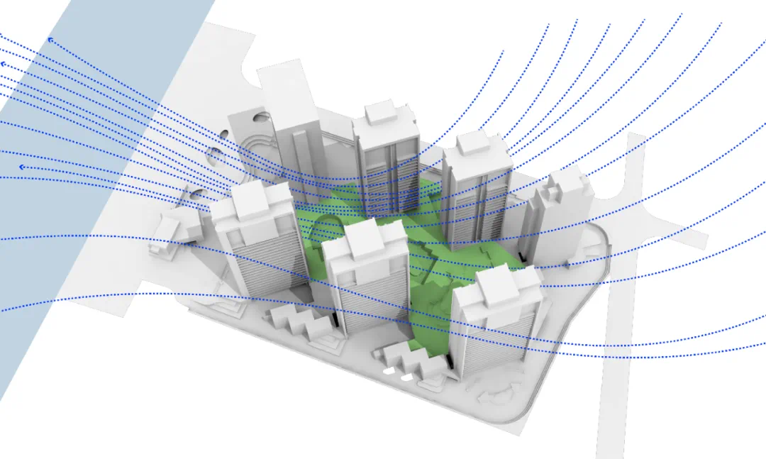 正如设计团队所料,这种“离经叛道”的布局方式一提出,马上被当地相关政府部门所质疑:“其他地块的建筑物,都是平行或者垂直白河大道的,整整齐齐,而这个方案的布局可能会打乱整体的肌理,而且也不利于建筑物沿大道形成标志性的界面。”,针对这种质疑,设计团队通过大量的分析图、动画模拟以及视频进行了认真的研究和分析,并向当地政府部门做了详尽的汇报和沟通,最终,设计方案全票通过审查,才使得这个理念最终落地成型。