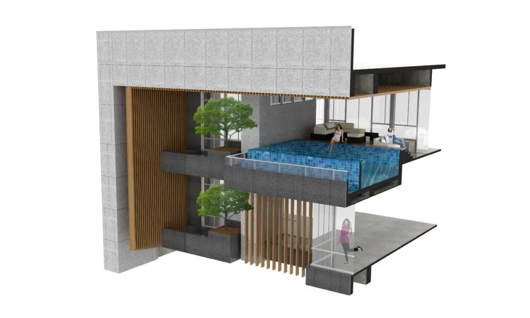 ▲顶层空中别墅无边泳池节点剖透视设计图ⒸKKL