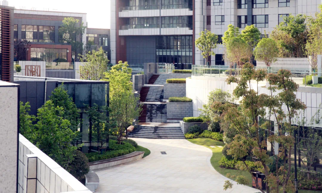 住区的主要绿地位于3米高的景观平台上,是一种中间高,四周低的竖向布局,这种布局可以提升住区品质感和外部形象,积极地将人们的回家方式演绎得丰富、尊享,强化住区住户的归属感和仪式感。