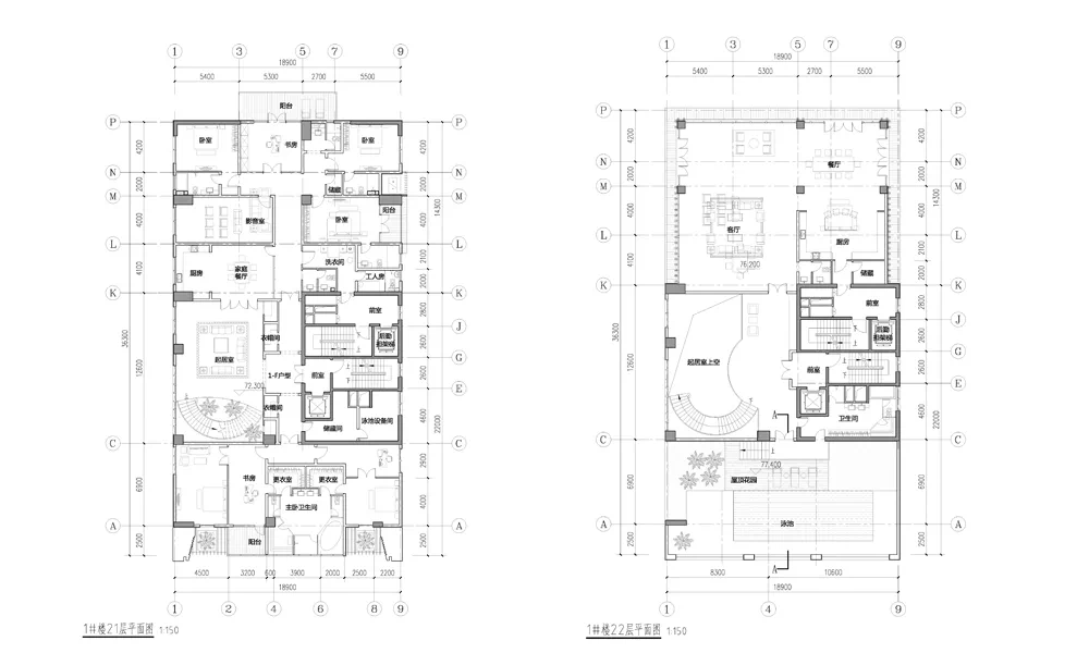 ▲1000㎡空中别墅的首层及二层户型图ⒸKKL