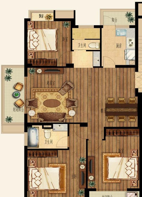3室2厅2卫-3号楼E户型