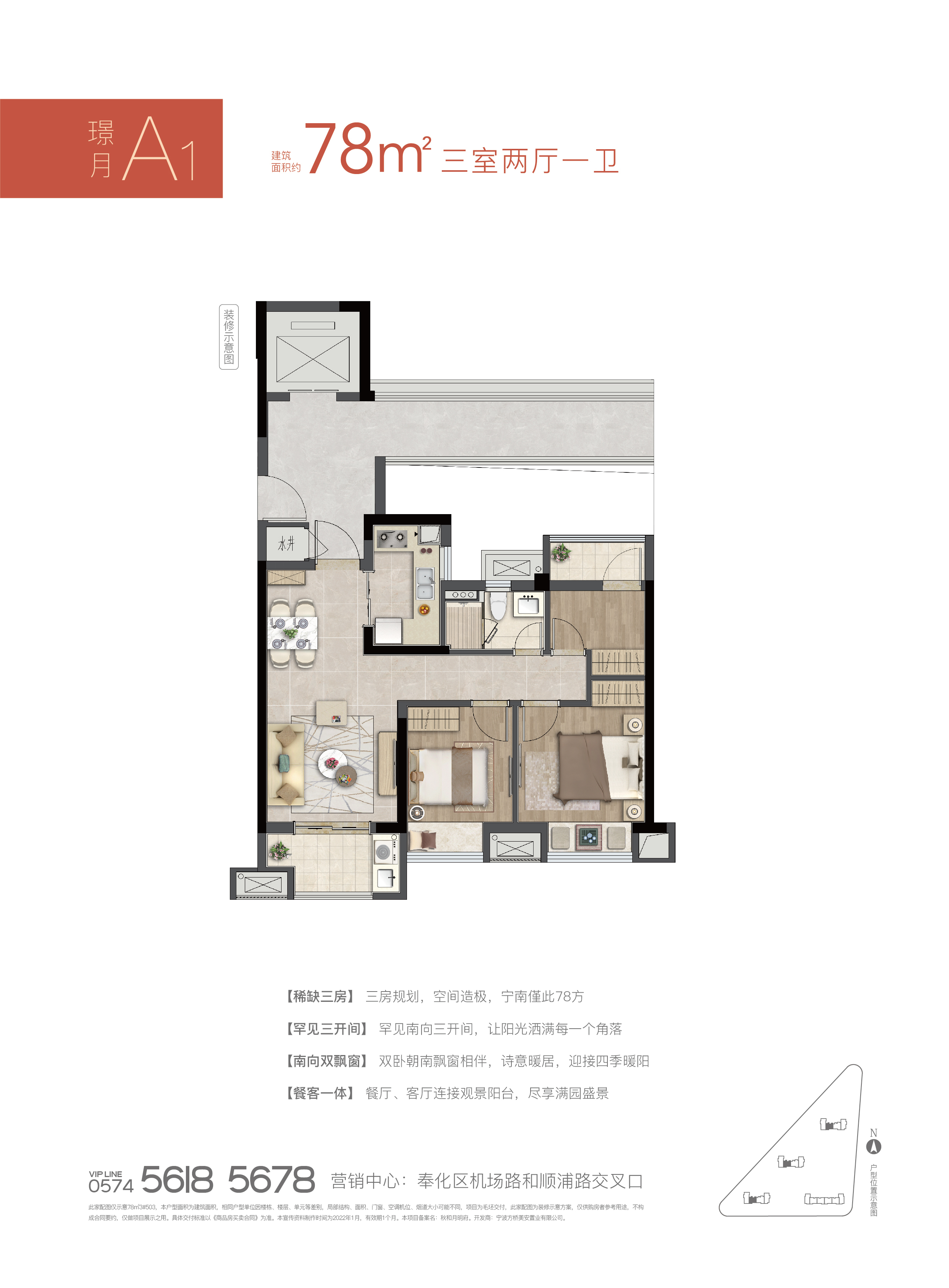 荣安地产,择址宁南新城,3号线琎琳站旁,沿县江而生,百万方滨江公园环绕,周边荟聚城市精粹资源,集结Tod综合体(规划中)、滨江商业(在建)、宁波第一医院(在建)等优质商业、生活配套,上海师范大学附属宁波实验学校、九年一贯制学校(规划)、文化幼儿园(在建)等优质教育资源环伺;项目汲取年轻精英的自住需求,规划建筑面积约78/89m2奢配作品,以小户型突破空间想象极限,宁南不曾有,未来难再现;项目规划4幢高层,围合式布局,打造户户瞰江之尊崇享受;园区规划一心两轴六花园,与外部县江双水岸遥相呼应,以内外双园,定制城市年轻精英的young生活场域,构筑美好生活时光。