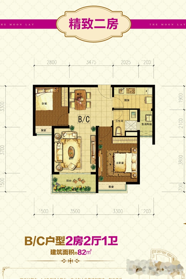2室2厅1卫-月亮湾高层B/C户型