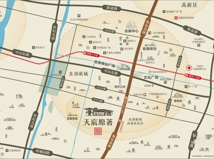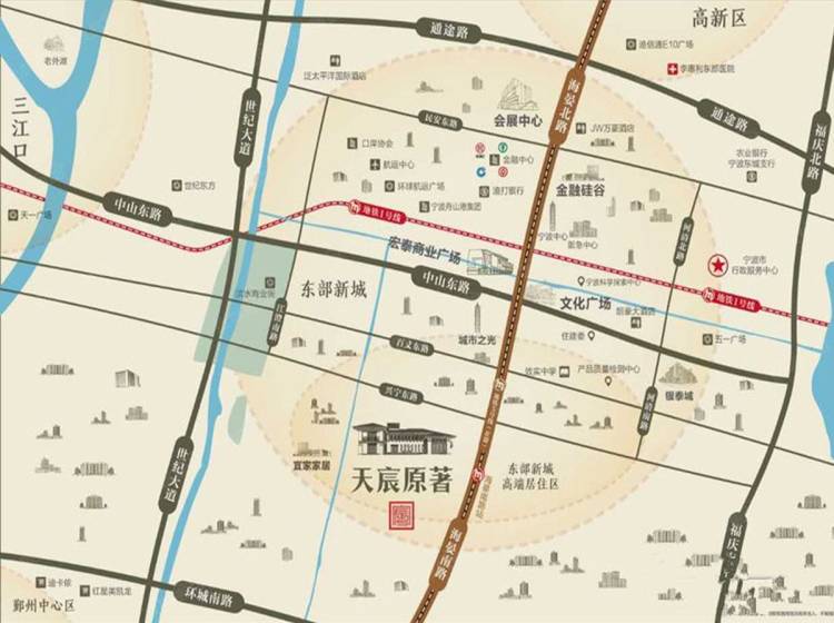 龙湖天宸原著位于海晏南路与宜兴路交叉口,周边商业配套主要有宜家、红星美凯龙、迪卡侬、文化广场、及在建的宏泰综合体、阪急商业、银泰城,直线距离均在1.5公里之内。地块内配套有净菜场,生活非常方便。