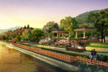 坐拥广袤山地旅游资源,与山自成一体,建筑依地势、落差、自然景观而栖,灵动的水系与起伏跌宕的山景浑然一体,景色佳,视野开阔。