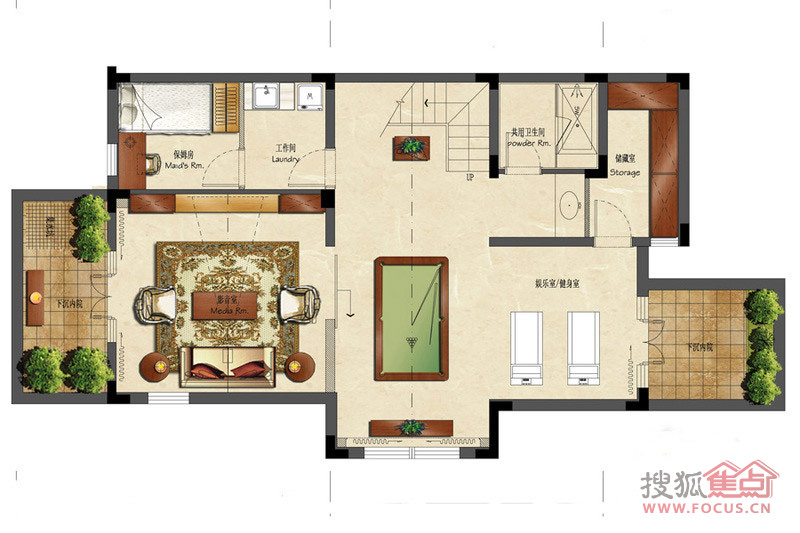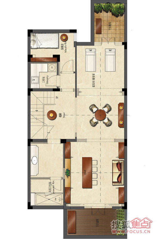 5室4厅3卫-龙溪谷联排别墅E户型北边套1F