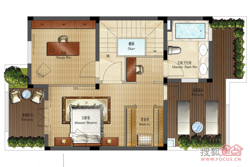 5室4厅3卫-龙溪谷联排别墅E户型北边套2F