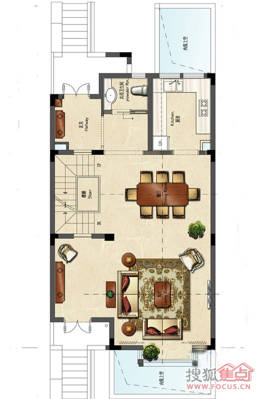 5室2厅3卫-龙溪谷联排别墅F户型北中1F