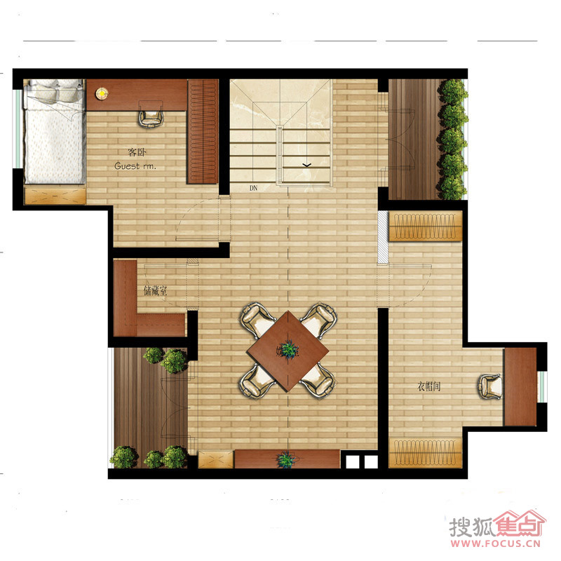 5室4厅3卫-龙溪谷联排别墅E户型北边套3F