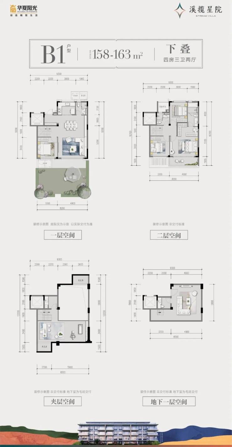 建面约158~163㎡下叠:地下室主题空间打造/餐客连厅/奢华主卧套房/独立三房