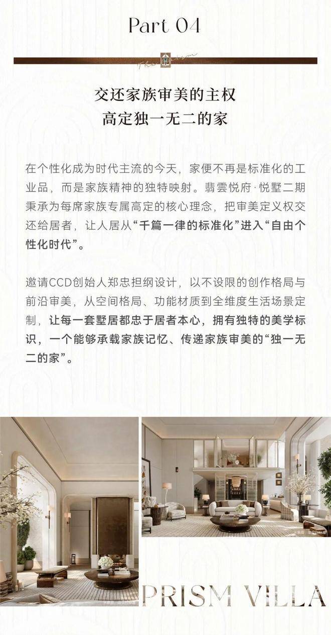 翡云悦府官方售楼处电话:400-8818-994【预约☎】翡云悦府·悦墅II期联袂国际CCD大师设计团队,以不设限的创作格局与审美,从空间格局、功能材质到全维度生活场景,以个性化定制、科技定制让空间格局随生活方式而变,审美风格随个人偏好而变,让家真正成为居住者精神世界的外化。