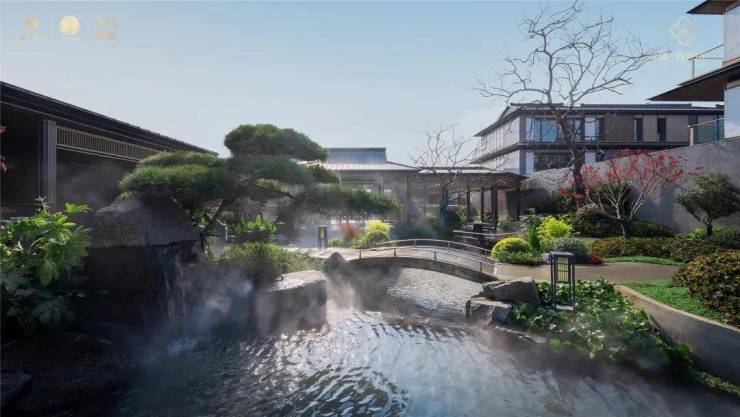 项目通过打造昆山首座下沉式宋风美学庭院,构建起双层洄游动线系统。绿城凭借6米高差的立体庭院布局,塑造出一幅可游可观的现代山水画卷。绿城设计团队取法昆山亭林公园,以自然高差为画布,用画笔把山、水、石、树等元素取用融合,结合池、泉、瀑、溪的立体多维水景系统,勾勒出城市里难得一见的自然式山水立体庭院。