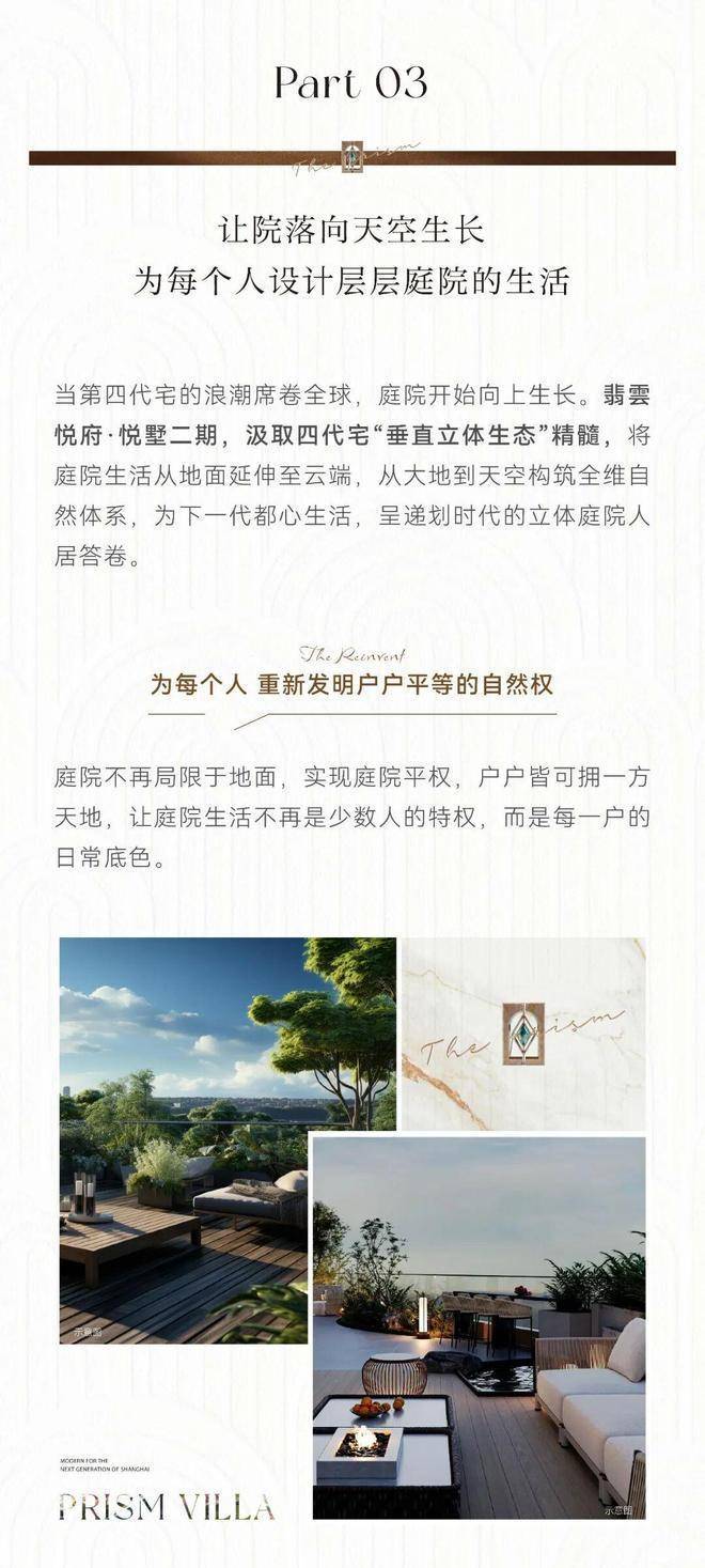 翡云悦府官方售楼处电话:400-8818-994【预约☎】翡云悦府·悦墅II期基于四代宅垂直立体生态的创新手法,打造了地面庭院、空中悬浮庭院、南北双露台庭院三重立体园境,实现层层有露台,户户有庭院的居住理想,让庭院不再是少数人的特权,而是每一层、每一户的日常。