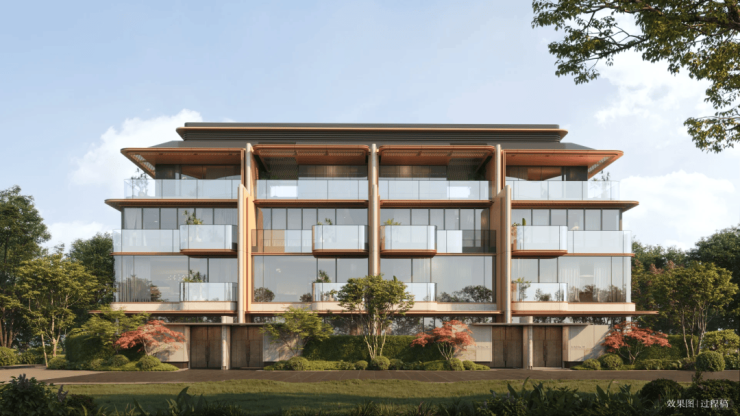 联排立面通过“虚实对比”,实体墙部分采用仿砖涂料,虚体部分为玻璃幕墙,既保证私密性又提升通透感。联排产品采用“双坡屋顶+金属格栅”设计,屋顶坡度模拟江南传统民居,格栅则过滤强光,形成斑驳的光影效果。