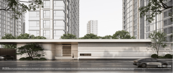 超级界面:约154米超长景观界面,以转角艺术奢石景墙,实现从城市到社区的从容过渡;