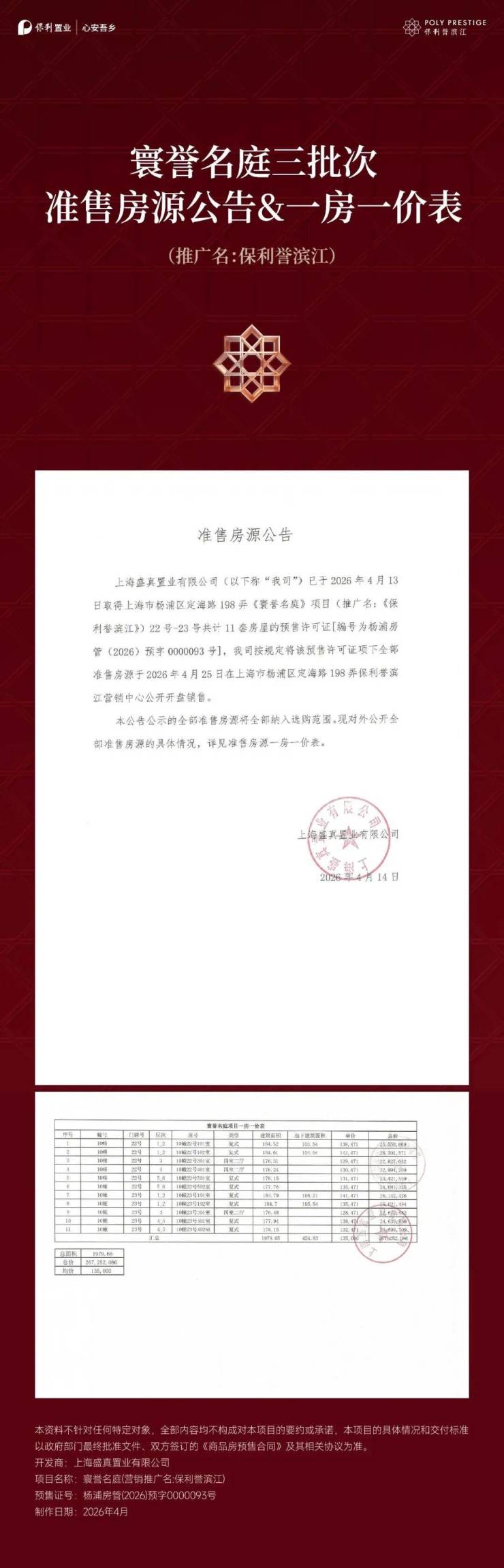 认购地点:杨浦定海路198弄保利誉滨江营销中心;