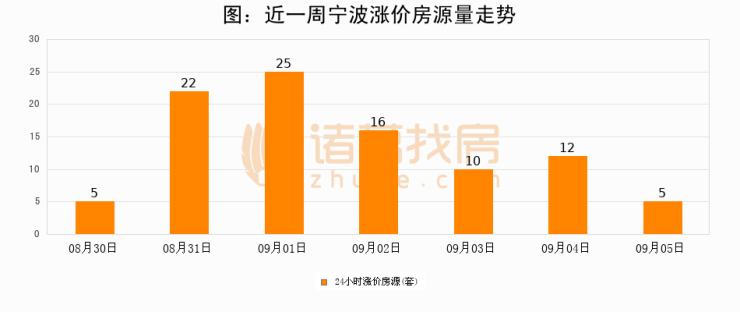 根据诸葛找房数据显示,宁波24小时涨价房源量为5套,较09月04日减少7套,环比下降58.3%。与此同时,涨价房源占比小幅回落,对于购房者来说是一个入市窗口期,购房者可抓住时机入市。