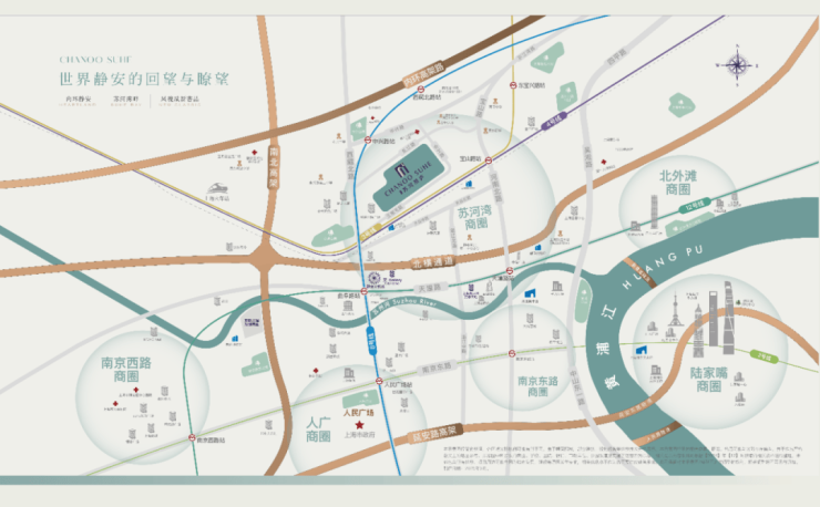 在象屿·苏河琹庐,从容享受苏河湾国际滨水生活,与外白渡桥、外滩距离步行可达。苏河前排人居雅宅,距苏州河直线距离约1KM(百度测距),约3KM国际生活圈,涵盖陆家嘴、人民广场、静安寺、南京西路、南京东路、外滩、新天地等繁华CBD。