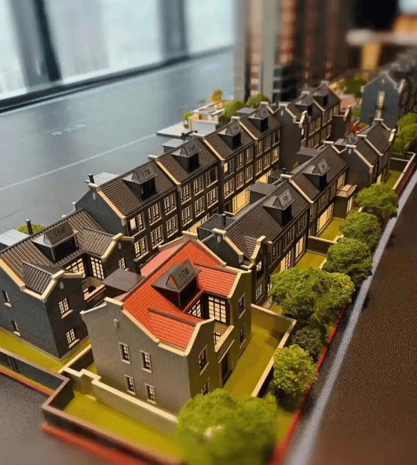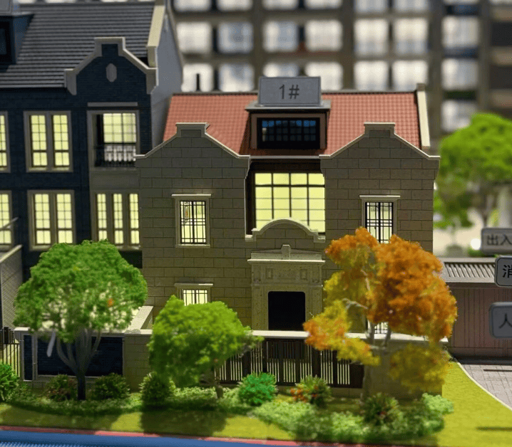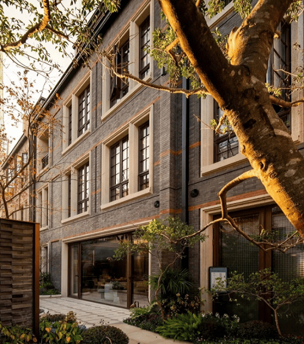 风貌别墅延续了上海石库门风格。青砖黛瓦,红色腰线,南向面宽最大的大概约15米左右。从一扇门、一扇窗中保留和创新,同时区别“里弄式”别墅的小格局、少采光、多浪费;空间布局灵活,满足不同高阶家庭生活需求,递呈出静安苏河畔难得的海派浓荫别墅。