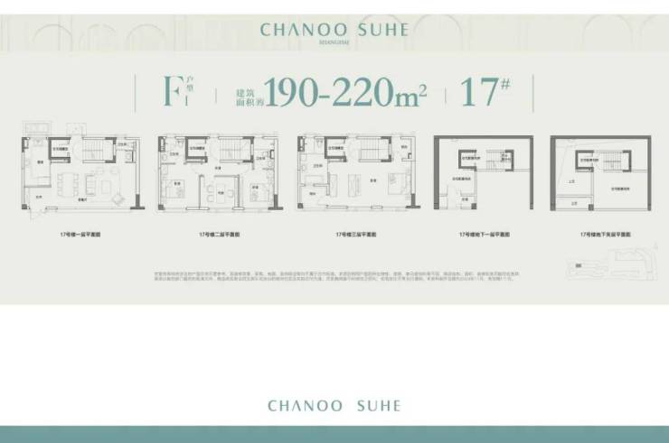 建面约191–223㎡,地上2–3层 + 地下夹层/地下室
