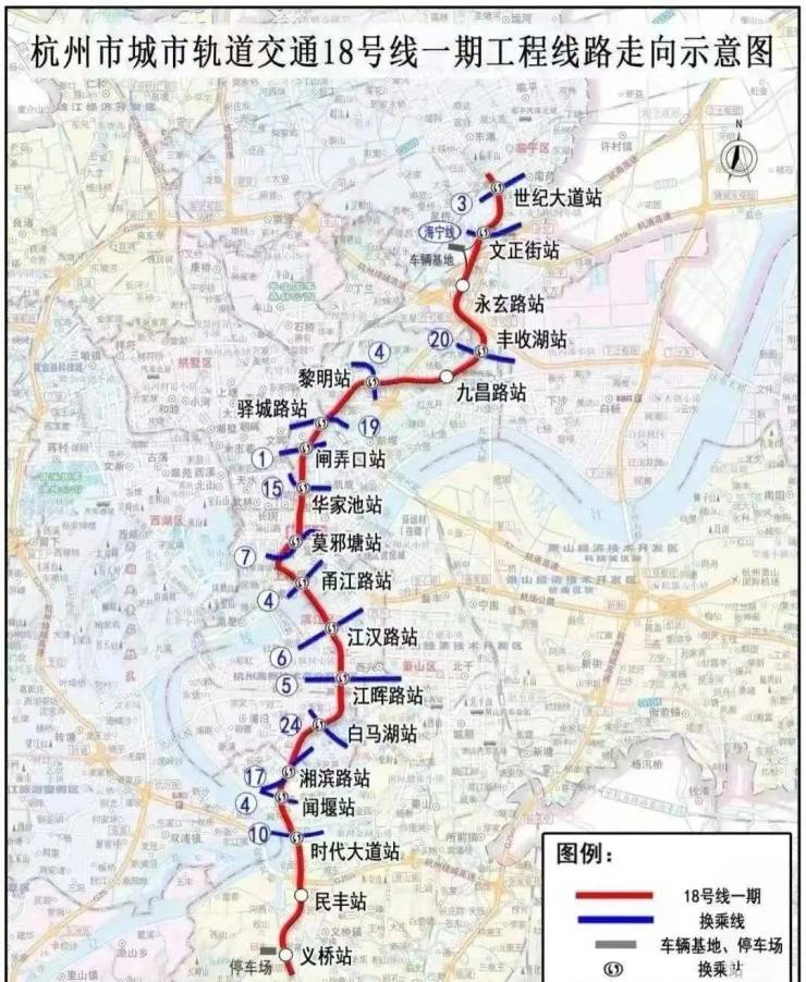 星桥站一站换乘18号线(世纪大道-义桥, 预计2028年通车)途经永玄路,丰收湖,笕桥,钱江新城,滨江白马湖等区域,实现城市繁华的无界联通。