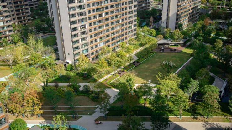 傍晚下班回家,可以牵着孩子、带着狗,顺着小径慢悠悠地散步到家门口的公园里。孩子嬉笑打闹,和爱人聊聊家常。
