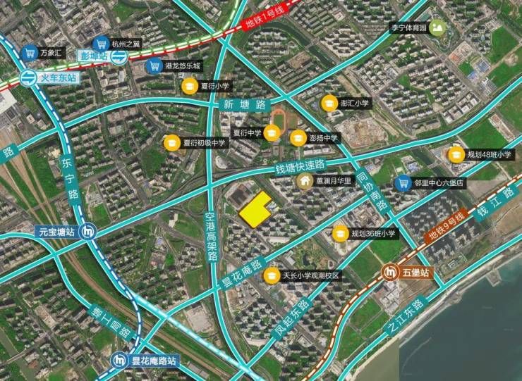 西向直线距离杭州东站约5公里,高效连接全城