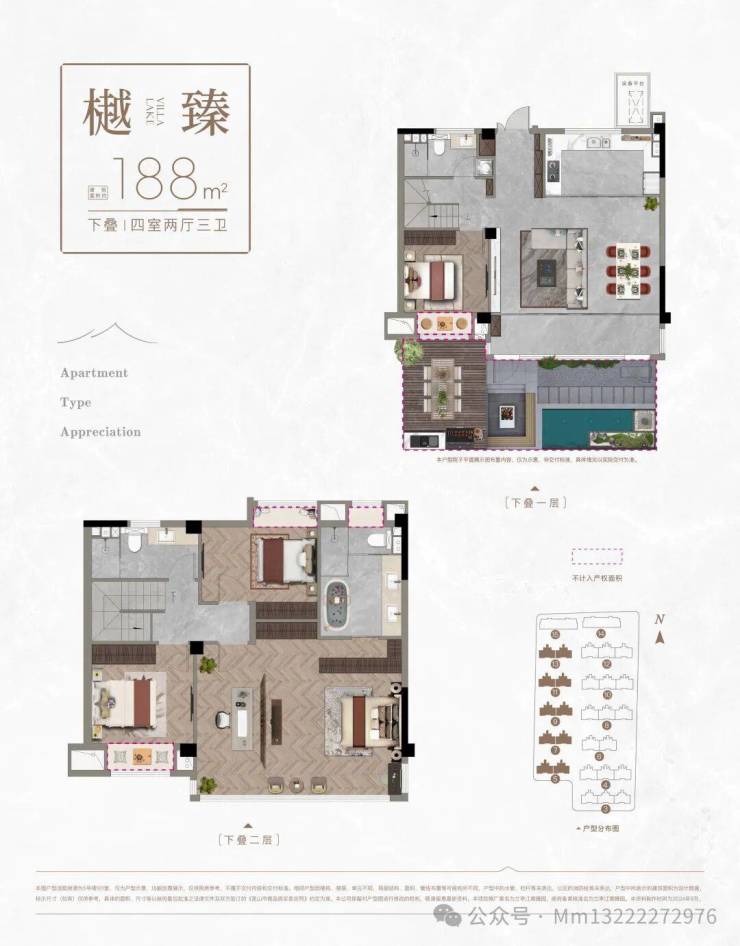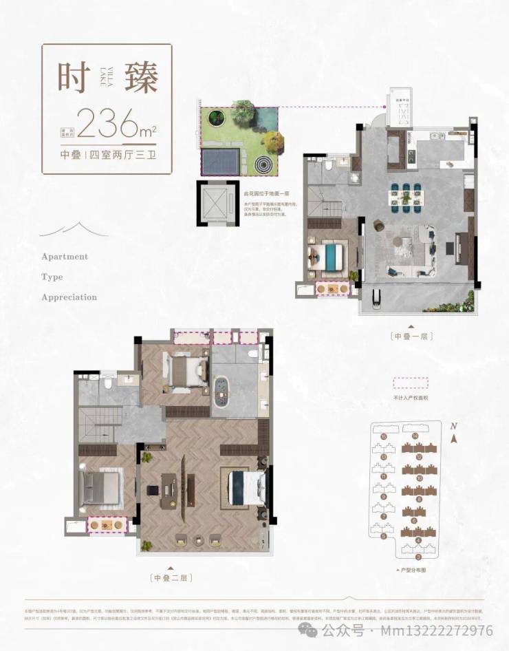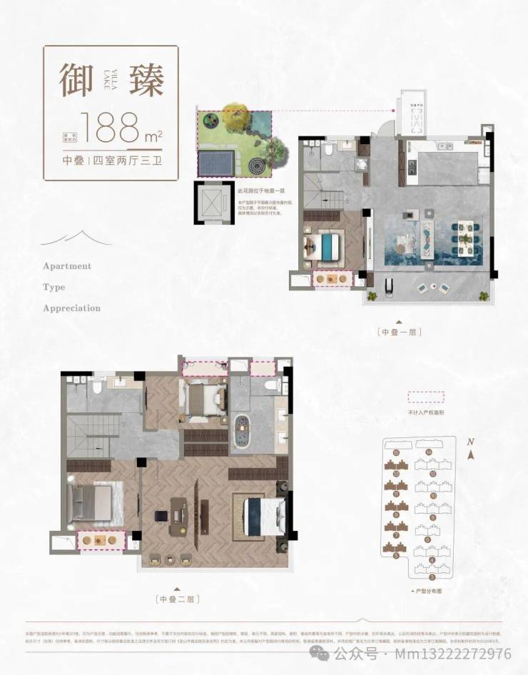 注:叠墅户型附赠露台或花园(如南向花园35㎡、露台13.5-22㎡)