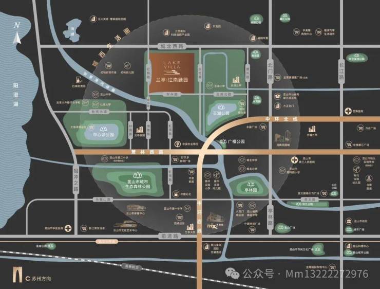 生态资源环绕:三大公园——中心湖公园、昆山森林公园、玉湖公园环绕,宜居指数高