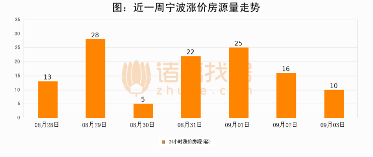 根据诸葛找房数据显示,宁波24小时涨价房源量为10套,较09月02日减少6套,环比下降37.5%。与此同时,涨价房源占比小幅回落,对于购房者来说是一个入市窗口期,购房者可抓住时机入市。
