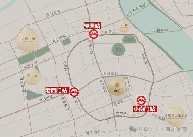 项目所在豫园商圈为中心,南至外滩金融带,西至新天地、淮海路商圈,东至外滩,驾车5-10分钟可达。距离外滩金融带约1公里、新天地约1.5公里、淮海路约1.5公、南京路步行街约2.1公里...真正的举步即繁华。
