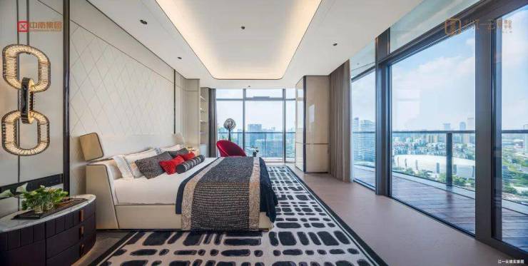 通过两次U型转弯,超大阳台以270°环绕起整个房间,每个卧室都能直通阳台,室内外的空气和风景无缝交融。在客厅和阳台的衔接处,还大手笔地配置了两扇全落地电动提升推拉门,价格相当于一辆特斯拉 Model Y汽车。