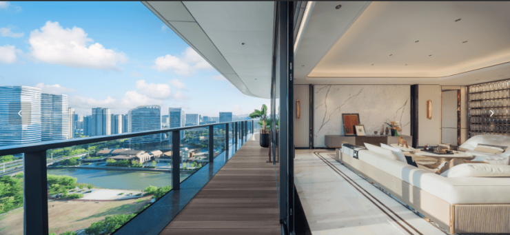 江一云境打破了室内和自然的边界,营造出城市里松弛的度假感。市场上有阳台的大平层都卖得很好,非常稀缺,这种层层带360°阳台的,更是绝版,再也批不出来了。