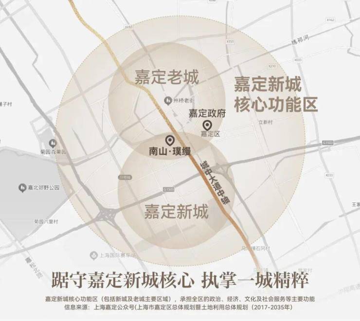 这条主轴贯穿了嘉定城央、嘉定新城CAZ,直上嘉闵高架!这条路所汇聚的资源,其完善程度、其能级,堪称非市区之最!首先,从南山璞缦出发,沿着城中路往北走,两侧是绵延不绝的商店;在这里,就算是冬天的半夜12点,街上依旧会有不少还在营业的小餐厅,这是只有市区才能享受到的高阶烟火气。当然,也有罗宾森广场、东方商厦等大型商城;也有上海大学、嘉定区中心医院等教育、医疗资源;还有嘉定博物馆、孔庙、法华塔、汇龙潭、秋霞圃、州桥老街等历史建筑和园林景观。沉淀百年的历史文脉、高阶烟火气、高能级教育、医疗配套,就在业主的家门口。其次,从南山璞缦出发,沿着城中路往南走,就是嘉定新城的CAZ!
