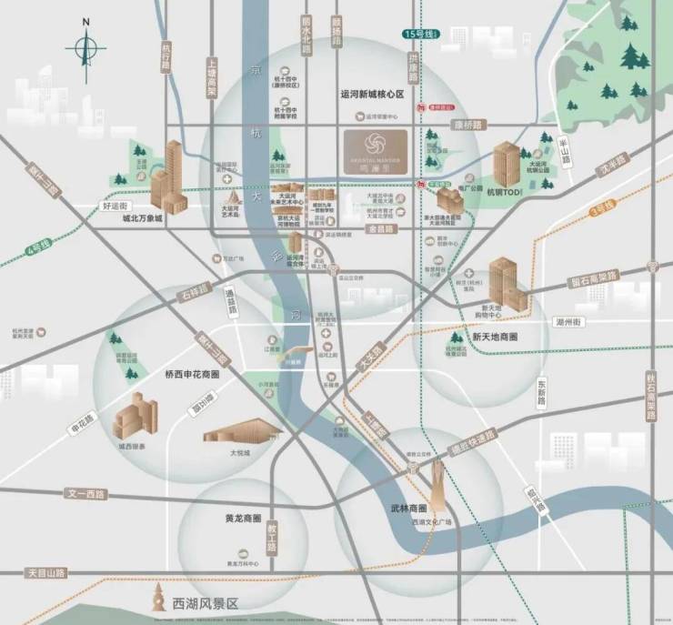 值得一提的是,项目直线距离约300米运河水岸,出园可到运河游步道,近揽一线京杭大运河缤纷胜景,可以安放杭州人都有的运河情结。