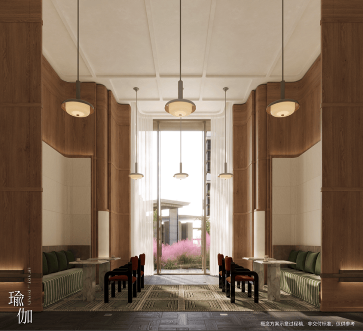 185㎡户型楼下核心景观效果示意图,仅供参考