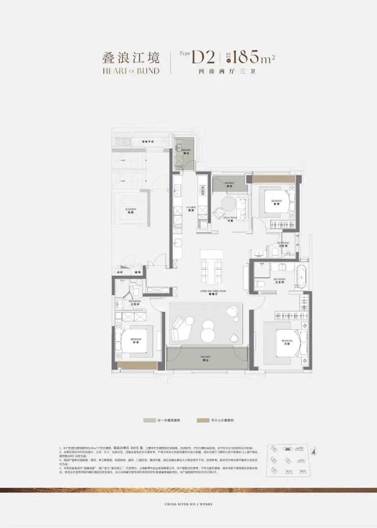 更难得的是,项目185㎡户型堪称上海滨江之上的园境栖居典范。