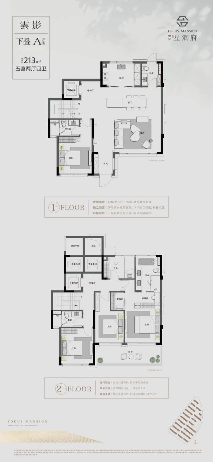 保亿・雲隐星润府共推出三种户型,分别是建面约 213 方下叠 A 户型、建面约216 方中叠 B 户型和建面约 218 方上叠 C 户型。