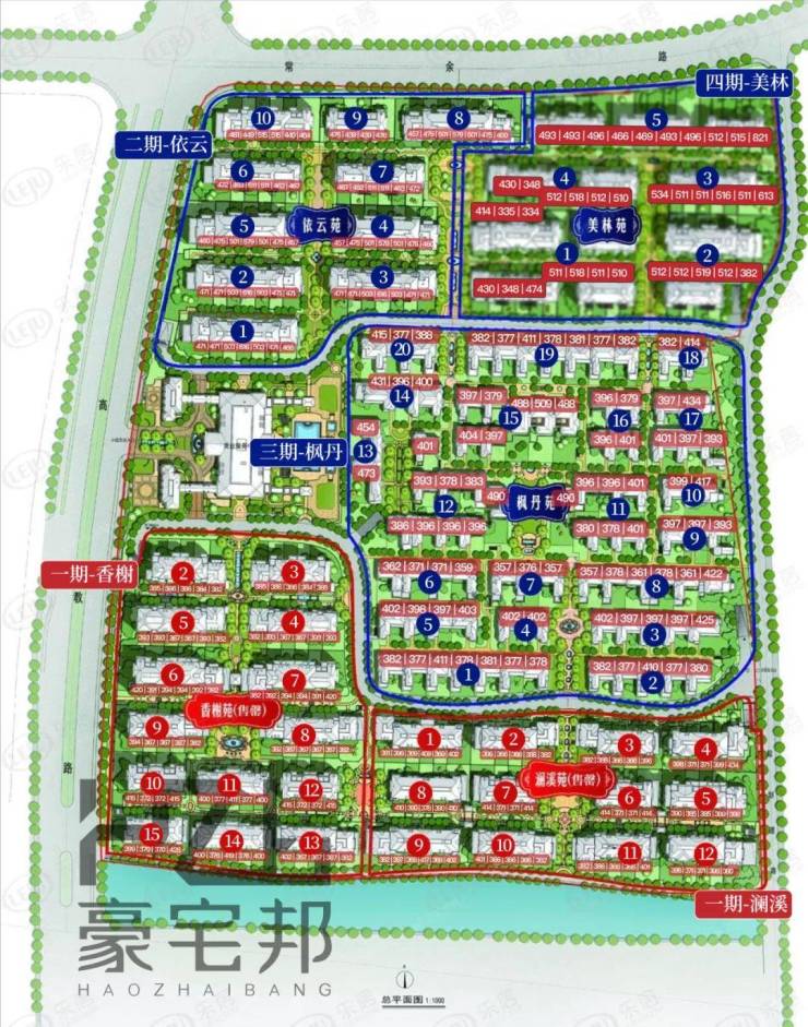 法式排屋。香榭苑14幢72户,于2011年12月交付,澜溪苑12幢60户于2012年3月交付。主力建面366-434方,庭院精装,约80-300方,地下室约130-160方,最新二手价格约2300-2800万。