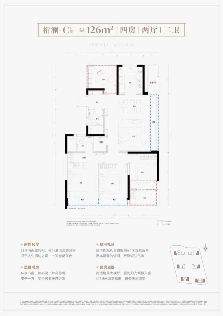 建面约126方4房2卫,270°稀缺边套四房