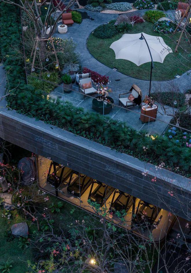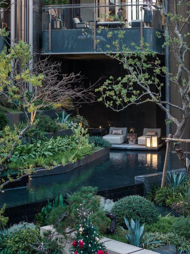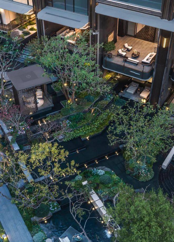山川溪谷与休憩架空层空间共汇,于庭园深度,打造一处可游、可观、可赏的自然谧境。
