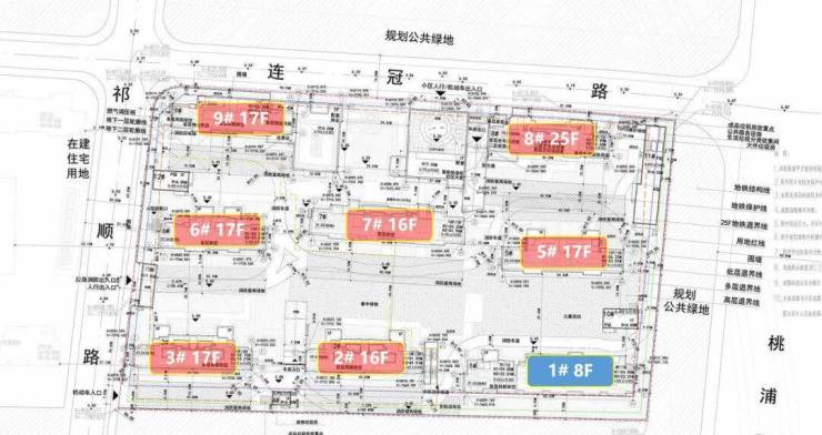 根据设计方案,项目拟建4幢总高17楼、2幢总高16楼、1幢总高25楼的住宅产品,另有1幢8楼保障房。