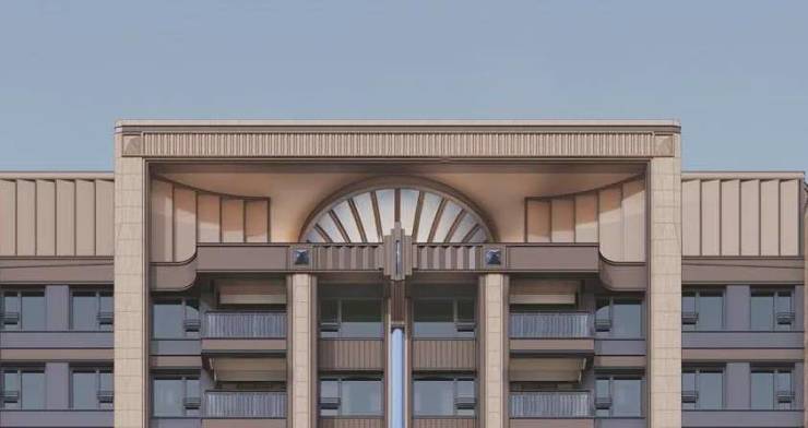 初览海阅首府三段式经典建筑立面,其浓郁的海派风情令人震撼,现代工艺与材料扎实而和谐相融。基座部分采用石材及铝板、不锈钢等高品质材料,主体立面以竖向线条为框架,搭配铝板,展现出端庄大气、典雅精致之美。