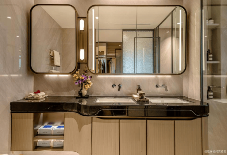 卫浴台盆选用唯宝,龙头、花洒采用汉斯格雅,搭配瑞士恩仕智能马桶,从品牌到体验都尽显品质。