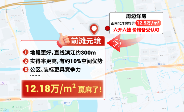 安全垫1:前滩核心占位+滨江约300米,双重地段加持