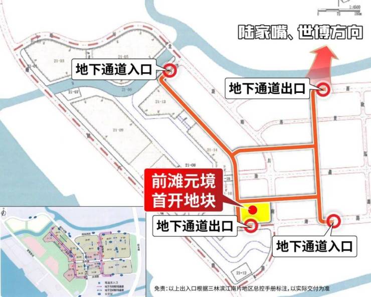 以后从前滩、世博、徐滨及陆家嘴等方向下班回来的客户可直接通过北侧及东侧地下通道入口进入后回到各自社区。