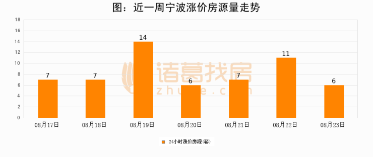根据诸葛找房数据显示,宁波24小时涨价房源量为6套,较08月22日减少5套,环比下降45.5%。与此同时,涨价房源占比小幅回落,对于购房者来说是一个入市窗口期,购房者可抓住时机入市。